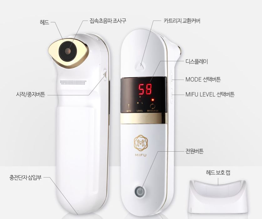 이 마이푸는 초음파를 집속 시켜 50~60도의 온도로 열 자극층을 진피에 전달합니다. 진피층이 수축하면서 즉각적으로 피부가 붙는 듯한 느낌을 받을 수 있습니다. 약 1주일~1개월에 걸쳐서 수축한 진피증이 회복하면서 피부 탄력조직이 이전보다 구조화되고 탄력이 개선됩니다.